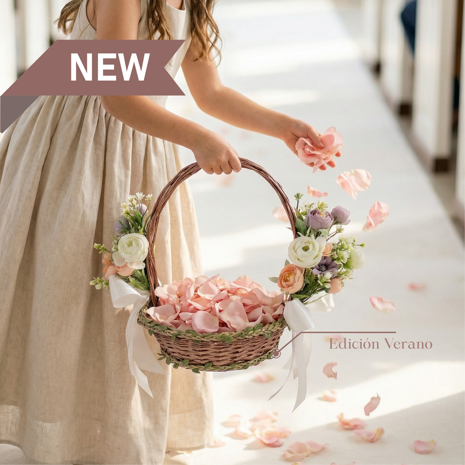 Cada pétalo guarda una ilusión.Las canastas Bride nacen para envolver tu gran día con ternura, detalle y ese encanto sutil que hace inolvidable cada instante.